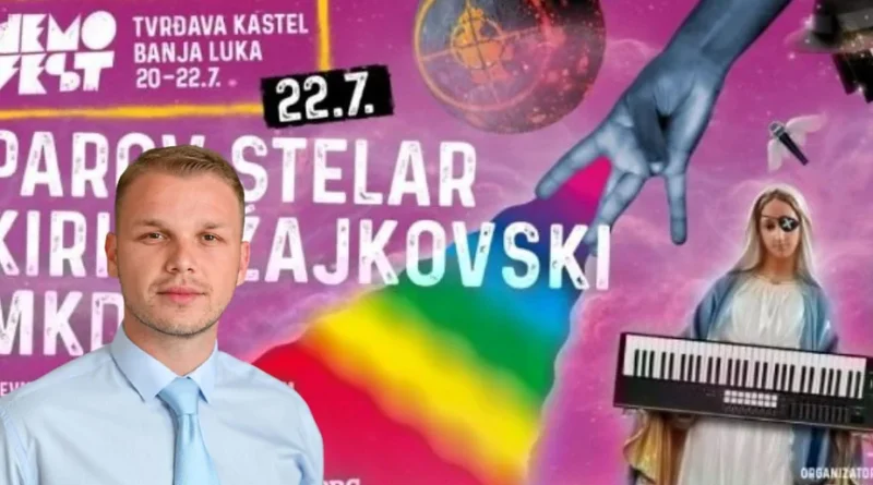 Read MoreStanivuković opet promoviše Gay populaciju Plakat za muzički festival Demofest na kojem je prikazana Bogorodica sa povezom na oku sa