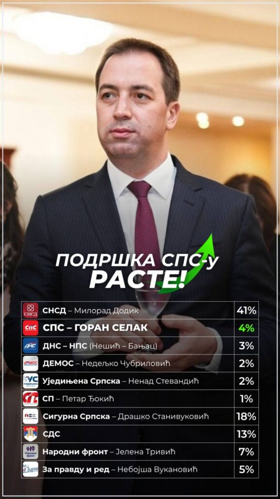 Naime, prema istraživanju koje je Selak objavio, Ujedinjena Srpske se našla na samom dnu, sa svega 2 odsto podrške, što se Stevandiću, očigledno, nimalo nije dopalo. Od Ujedinjene Srpske, kako pokazuju procenti, lošija je samo SP Petra Đokića.