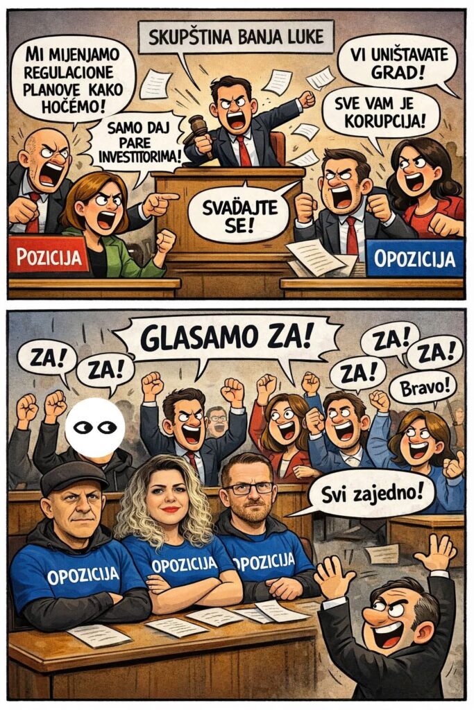 Potvrđena su pisanja portala POVJERLJIVO. Odbornici SNSD i PDP u Skupštini grada Banjaluka složno su glasali za izmjene postojećih i usvajanje novih regulacionih planova. A na dnevnom redu su bile i zgrade na Staroj autobuskoj i u Boriku.